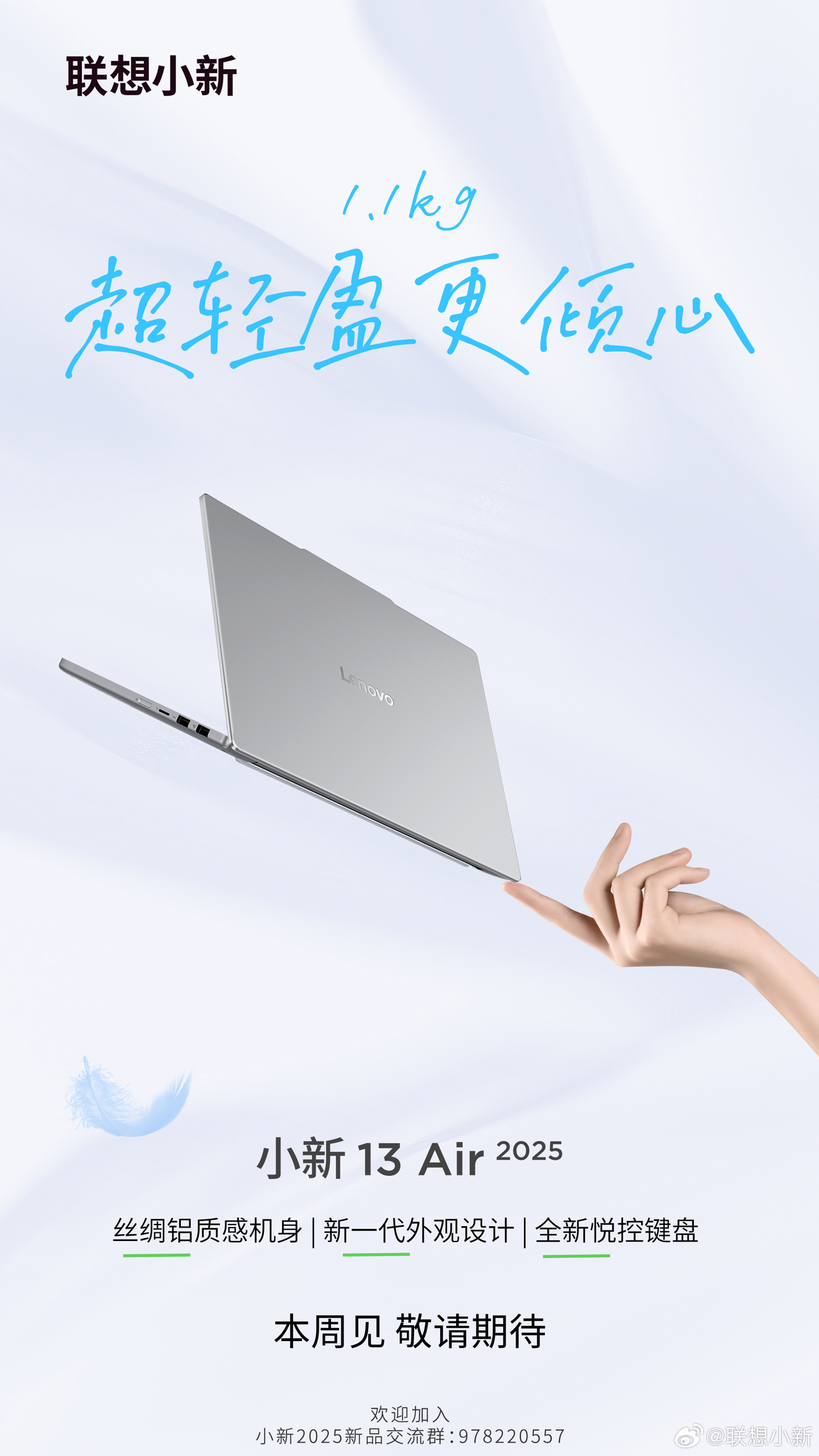 IT之家 10 月 21 日消息,联想官方今日发文宣布,联想小新 Air 2025 款笔记本“本周见”,包含 13 Air 和 15 Air 两款。
