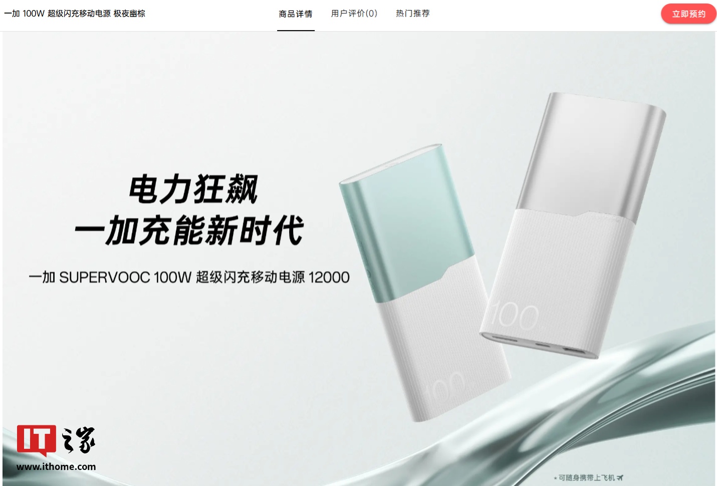 IT之家附一加 100W 闪充移动电源产品信息如下: