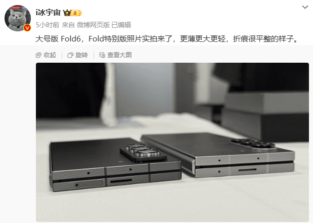 IT之家 10 月 21 日消息,三星 Galaxy Z Fold 特别版折叠屏手机今日在海外发布,随后,博主 @i冰宇宙 分享了一组新机的实拍图。