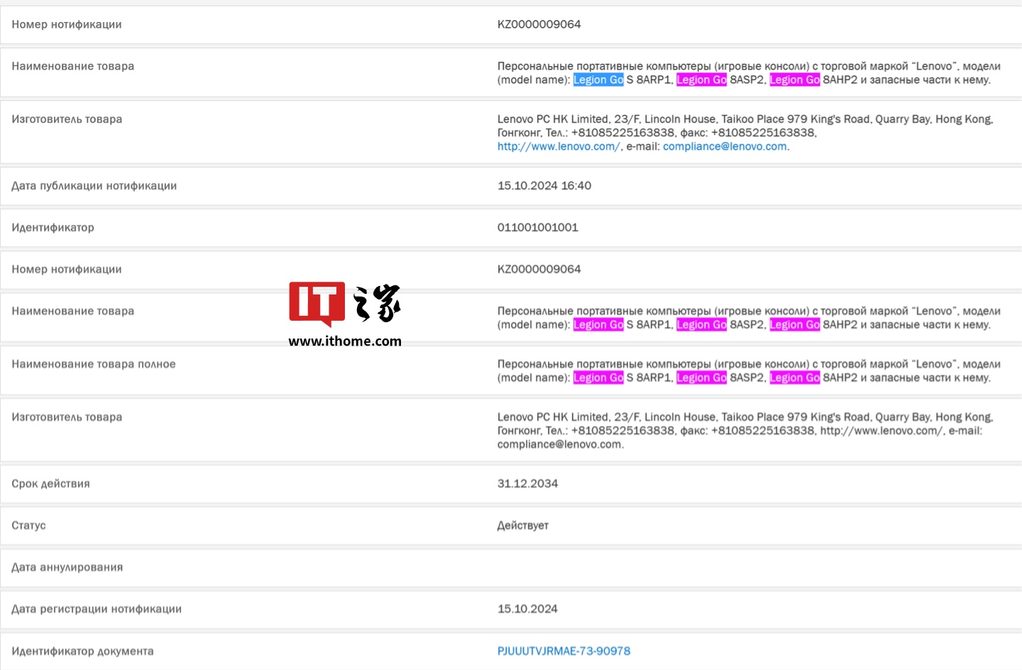 IT之家 10 月 22 日消息,据欧亚经济联盟 EAEU 下属欧亚经济委员会 EEC 注册信息文件,联想当地时间本月 15 日在 EEC 注册了 3 款拯救者 Legion Go 系列掌机产品,包含传闻已久的 Legion Go S 变体版本。