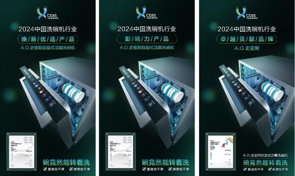 作为"国内家电行业领军者"之一的 A.O.史密斯适时推出了专为洗净中式深碗而研发 的自旋式洁霸洗碗机 DWQ17-R5Wi ,获得了用户与市场的双重认可 ,并在本次论坛举办 的"2024 中国洗碗机行业消费普及活动"中荣获"卓越贡献品牌"、"影响力产品"、"焕新优选产品"大奖!