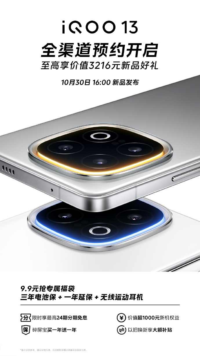 IT之家 10 月 22 日消息,iQOO 官方今日早些时候宣布 iQOO 13 将于 10 月 30 日 16:00 发布,目前新机已经全渠道开启预约,官方还放出了新机四款配色的外观图。