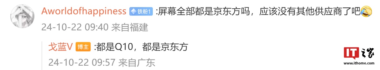 他还提到,从媒体评测来看,今年最强的三颗 SoC 的 CPU 排序是:骁龙 8 Elite>A18 Pro > 天玑 9400。他表示 iQOO 13 屏幕(供应商)都是京东方,都是 Q10 发光材料。
