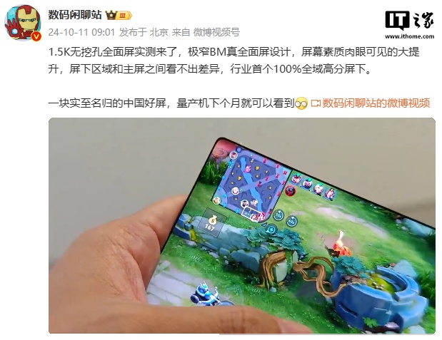 博主 @数码闲聊站 上个月曾在微博分享了 1.5K 无挖孔全面屏的实测视频,据他透露,努比亚将首发搭载该屏幕,并且 TOP5 厂商也在跟进中,屏幕来自京东方。另外,努比亚总裁倪飞在今年 9 月已确认 Z70 Ultra 手机将配备拍照键,同时新机还将提升拍照体验。