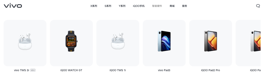 与之对比,vivo则对手机之外的新技术反应迟钝。小米布局IoT业务五年后的2018年,vivo才携手合作伙伴成立IoT开放生态联盟。目前,vivo官网仅售卖耳机、手表、平板三类IoT设备。