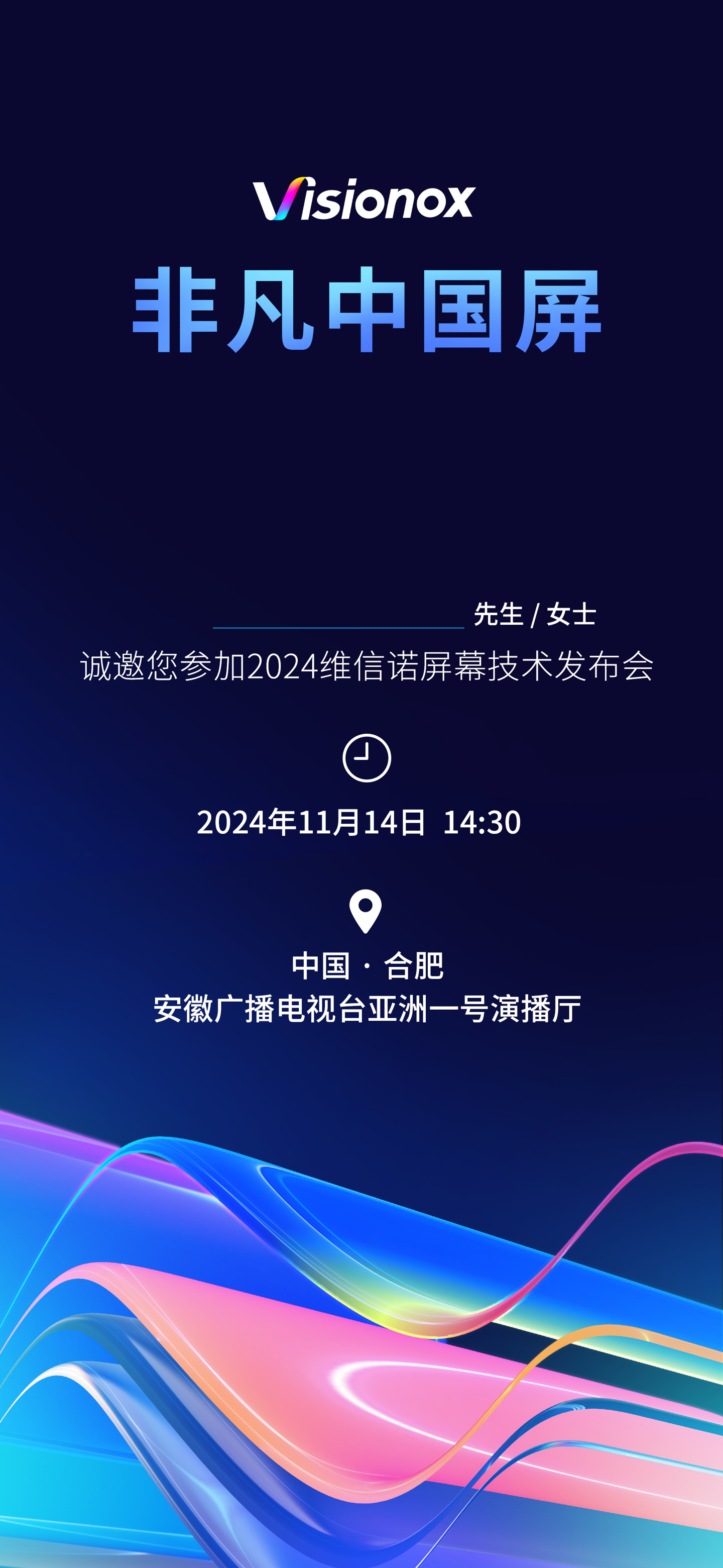 IT之家 11 月 8 日消息,维信诺今天发布了邀请函,宣布 2024 维信诺屏幕技术发布会主题为“非凡中国屏”,将于 11 月 14 日 14 时 30 分举行。
