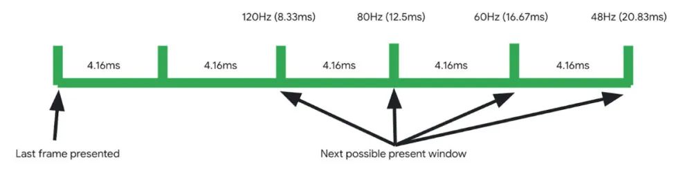 尽管许多手机制造商早已宣传可变刷新率(VRR),但安卓系统在此之前并未真正支持这种技术。以前的设备虽然配备了 LTPO 显示屏,但它们的刷新率仍然依赖于离散模式实现切换。