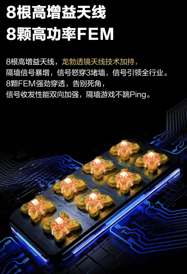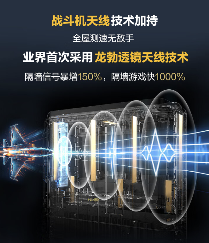 这款路由器配备 8 天线,号称采用龙勃透镜天线设计,即天线采用由铜银锡合金组成的双负材料,号称可有效减少信号传输过程中的无效折射和反射,降低信号衰减,带来翻倍的穿墻信号强度。
