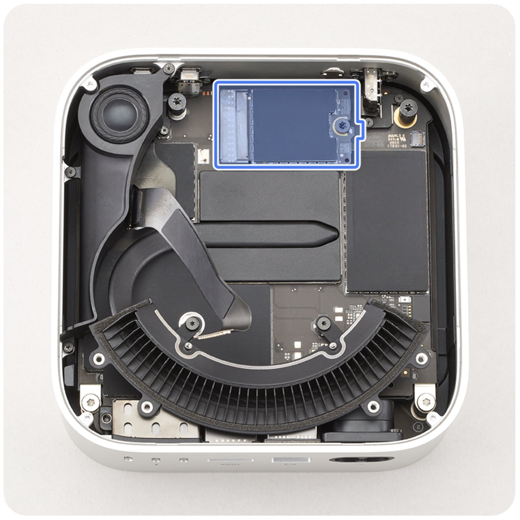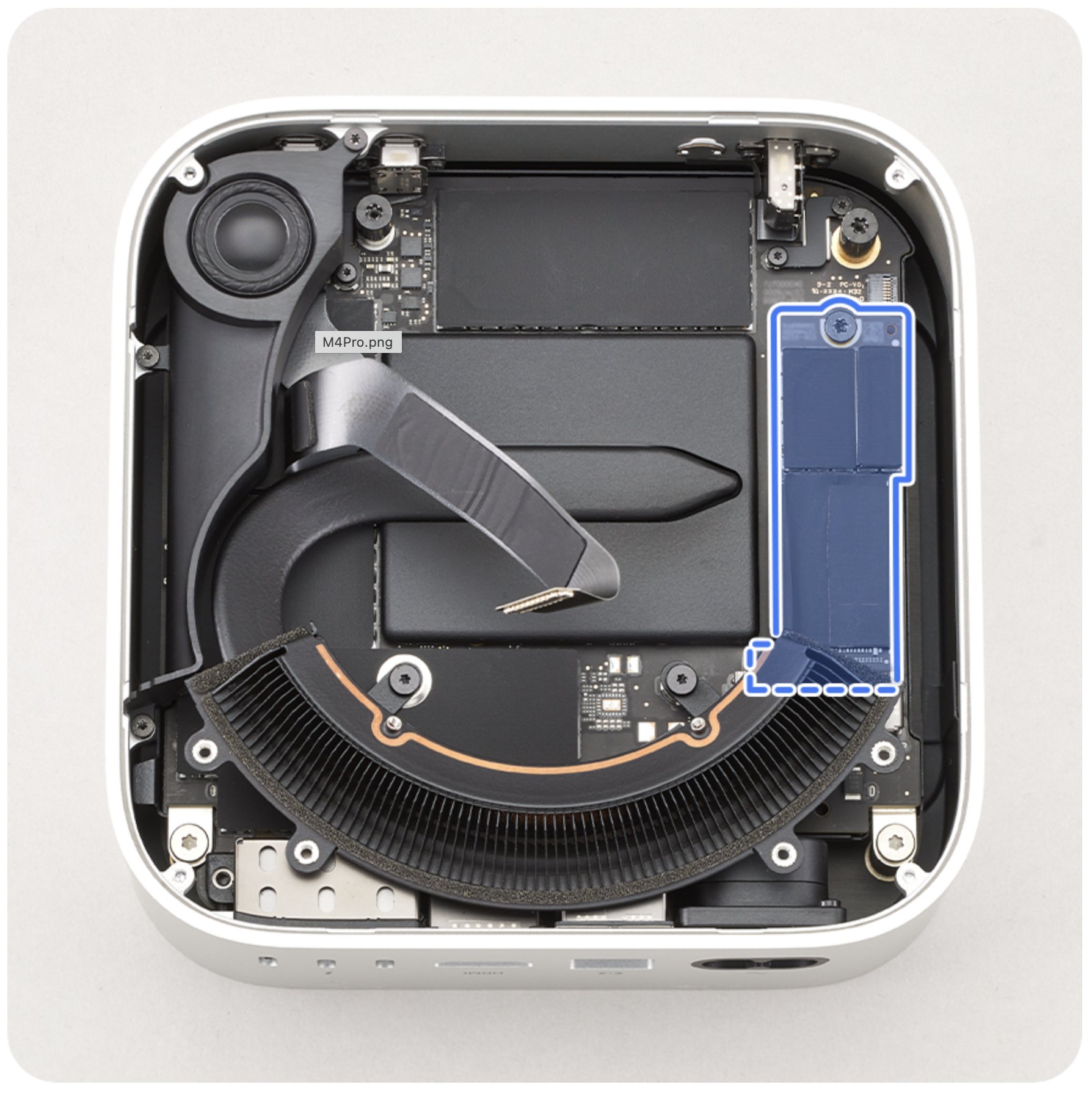 IT之家注意到,新款 Mac mini 实际上配备了可拆卸式 SSD,但这种 SSD 并非传统意义上的“SSD”而是苹果专门定制的插槽式 NAND 板,而 SSD 最重要的 NVMe 控制器仍位于 M4 芯片中,所以用户无法随意更换,但不排除苹果后续提供存储升级套件的可能。