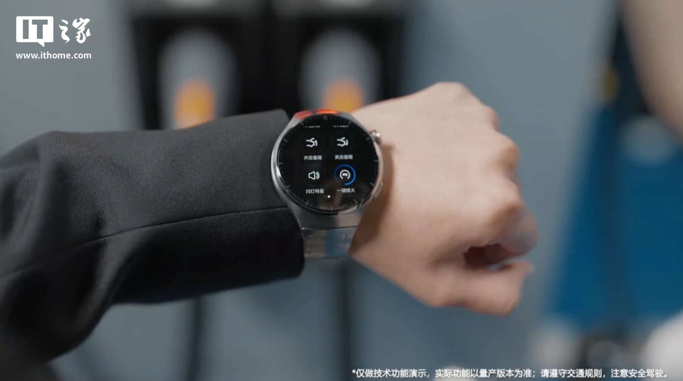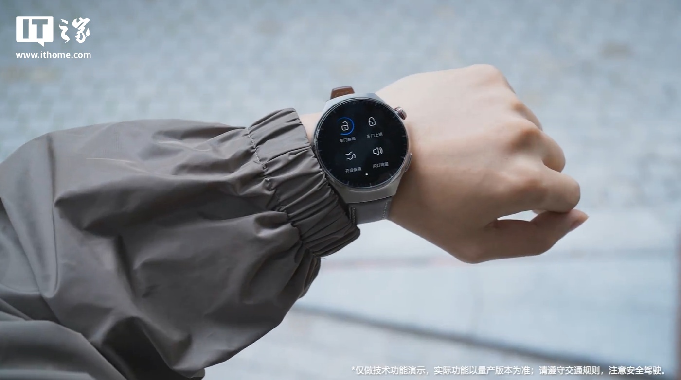 从官方发布的预热视频来看,比亚迪智能手表车控功能将支持华为、苹果、OPPO 等品牌智能手表,将提供车门解锁、车门上锁、开 / 关后备箱、闪灯鸣笛、一键熄火等功能。