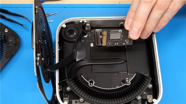 在最新的拆解视频中,dosdude1揭示了M4 Mac mini的SSD模块是可拆卸的,256GB存储由两颗128GB的NAND芯片组成。