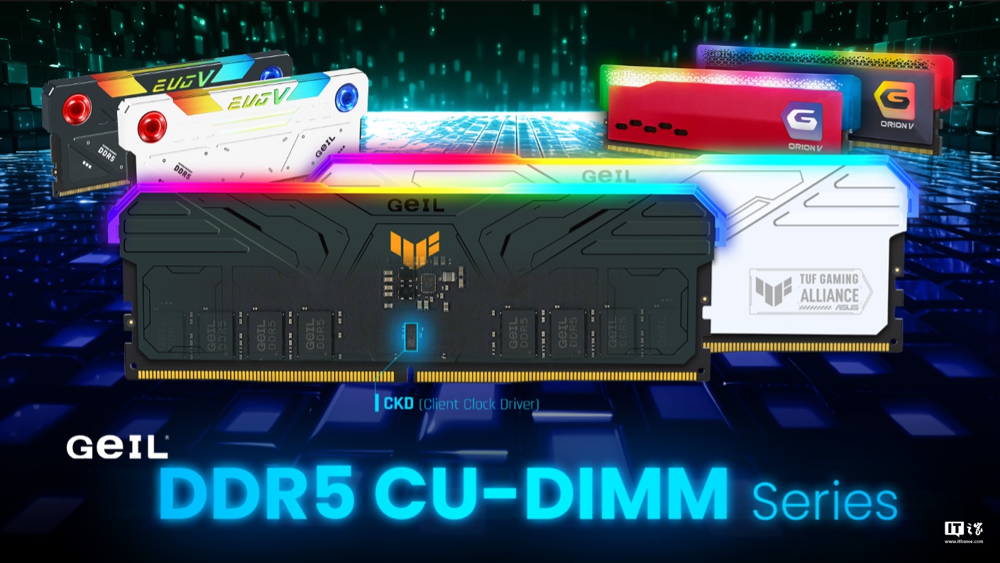 IT之家 11 月 10 日消息,PC 组件厂商金邦(GeIL)于 11 月 8 日发布了新款 DDR5 CUDIMM 和 UDIMM 内存。