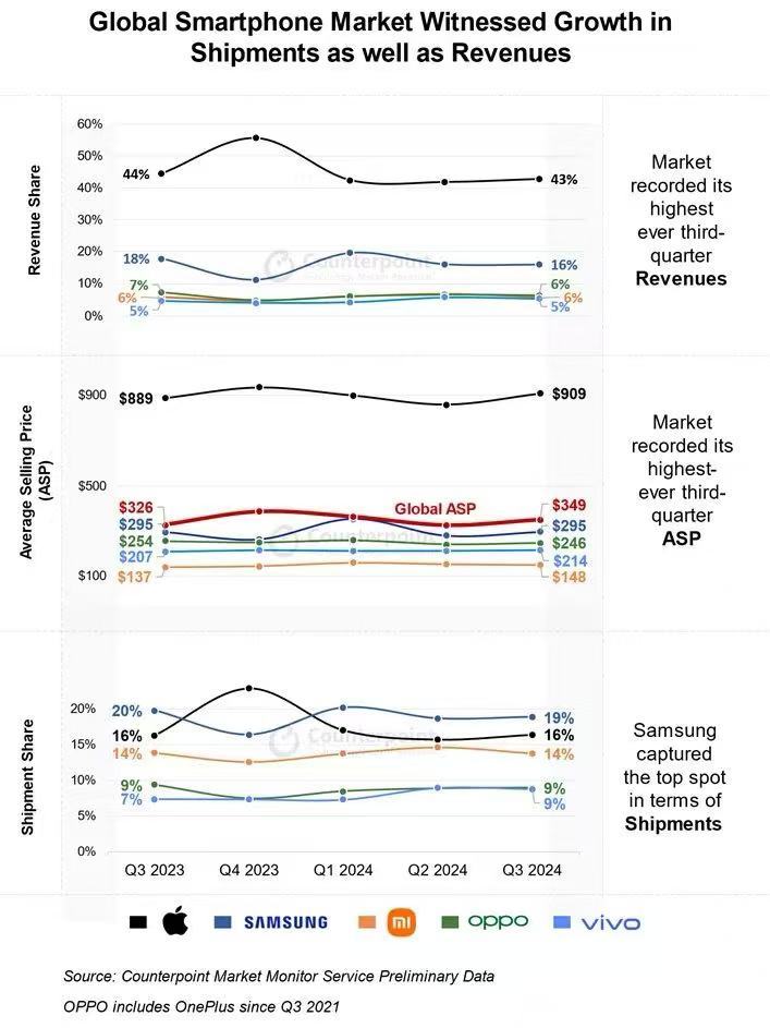 实际上,全球智能手机涨价这件事也并非这一代才发生,Counterpoint Research近期公开的一份调查报告显示,2024年全年全球智能手机平均售价已经来到365美元,较去年上涨3%。这意味着,相比起追求便宜,现在的消费者更愿意为功能买单。这就不难解释,为何苹果着急地将所有设备升级到支持Apple Intelligence的最低硬件标准,其实就是在为日后推出AI功能做准备。因为苹果也明白,没有新鲜功能,无法继续吸引消费者。