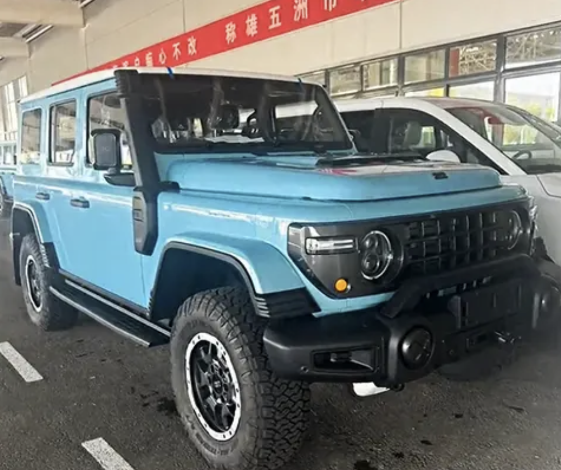 目前关于这款共创版的具体规格信息还不得而知,不过据懂车帝报道,此前有一款 212 T01 越野套件版实车谍照曝光,该车采用全新蓝色涂装,配合白色车顶,四轮轮眉也使用了车身同色处理,发动机舱盖带有通风口造型,前格栅调整为全新的网格式设计。