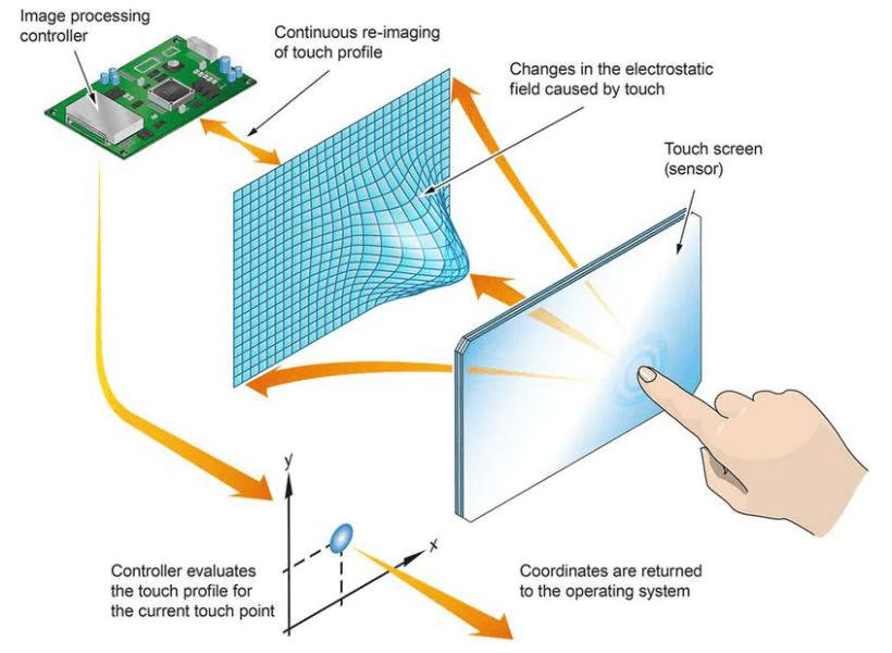 当你用手指触碰到材料表面时,人体会吸收一部分电流,这一触摸点的电容值就发生了变化。屏幕内部的传感器能够快速感知这种正在发生的电容变化,并将其传送至处理芯片,计算出触摸的精确坐标位置。