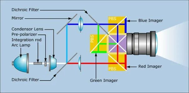 如今的LCoS光引擎先以R、G、B三色panel 以半透半反分光,再以PBS棱镜的方式“聚合”在一起,光引擎结构复杂体积难以大幅压缩,而且出射图像亮度不够,经过传输后入眼亮度低,这是AR眼镜最关键和最致命的问题。