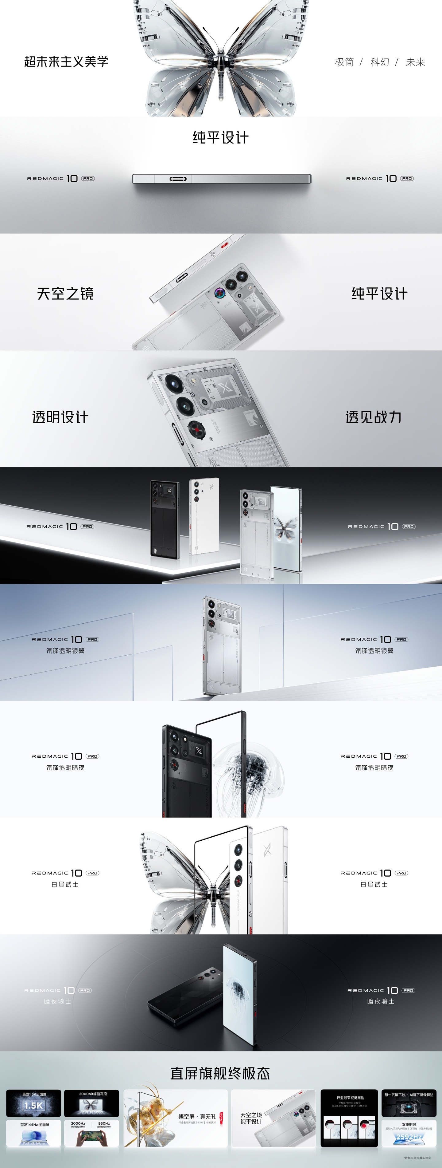 IT之家 11 月 13 日消息,红魔 10 Pro 系列手机已于今日正式亮相,延续纯平设计,提供透明设计版本。新机还配备“悟空屏”,采用全面无挖孔设计,支持 144Hz 高刷。