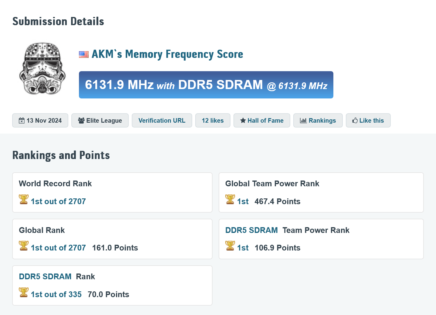 这一成绩超越此前金士顿 Renegade DDR5 CUDIMM + 微星 MEG Z890 UNIFY-X 创下的 12196 MT/s,成为目前最快的 DDR5 内存频率记录。