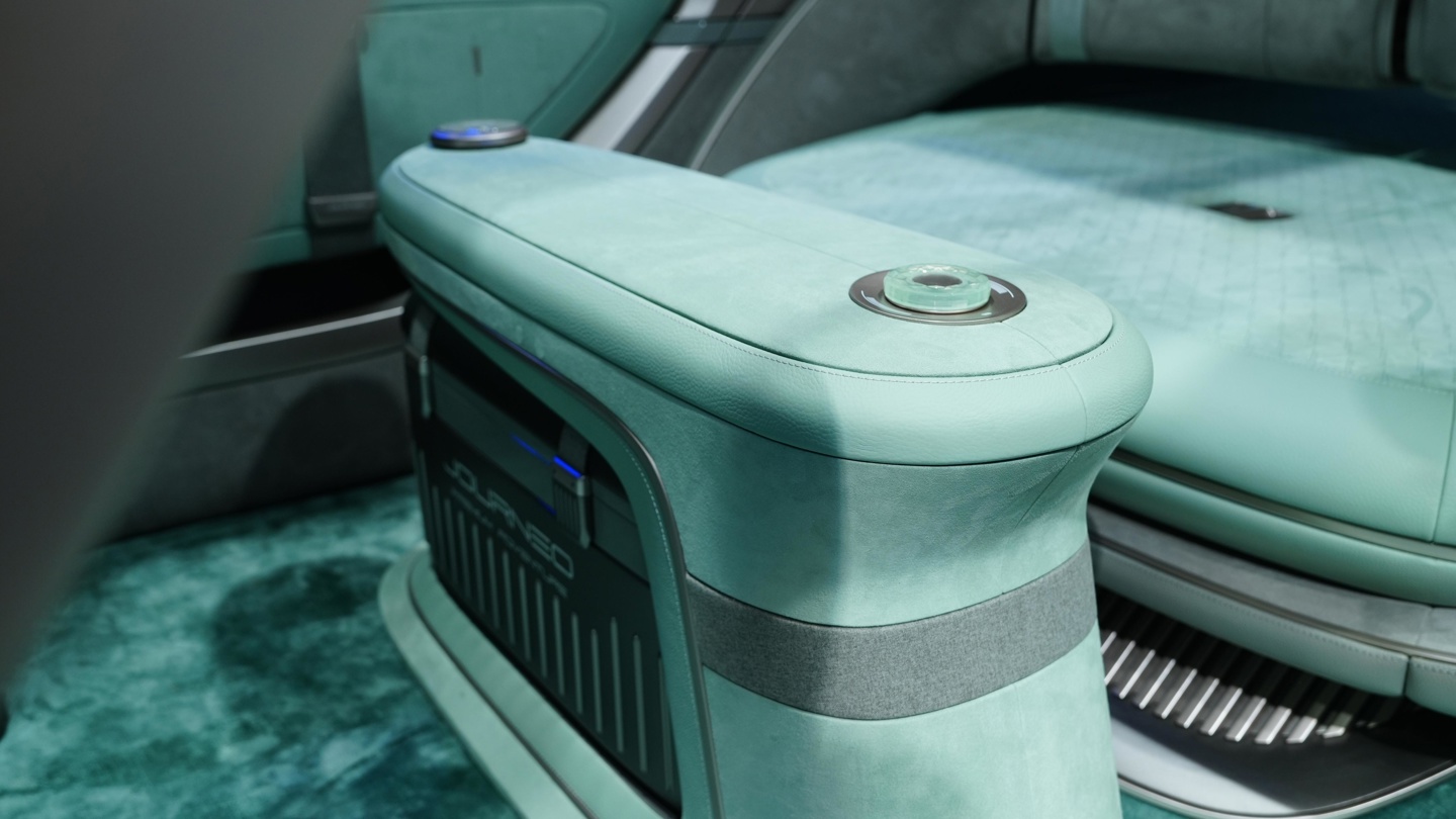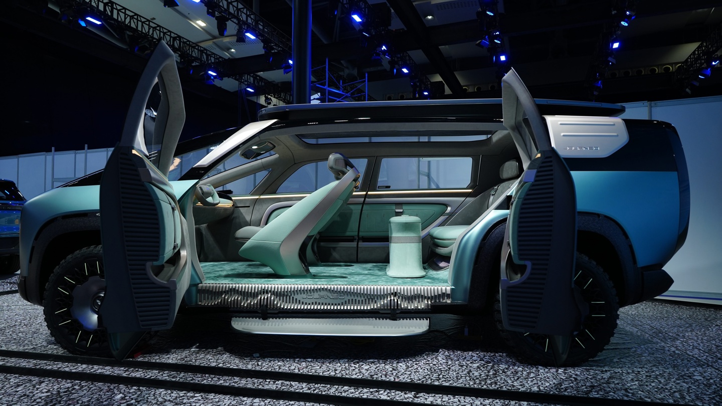 在车内布局方面,奇瑞劲云概念车预计采用七座设计,前排座椅支持 180 度旋转,后排岛台和第二排座椅可形成类似“移动客厅”的空间布局。第二排与第三排座椅均可折叠放平,其中第三排座椅还具备魔术收纳功能。