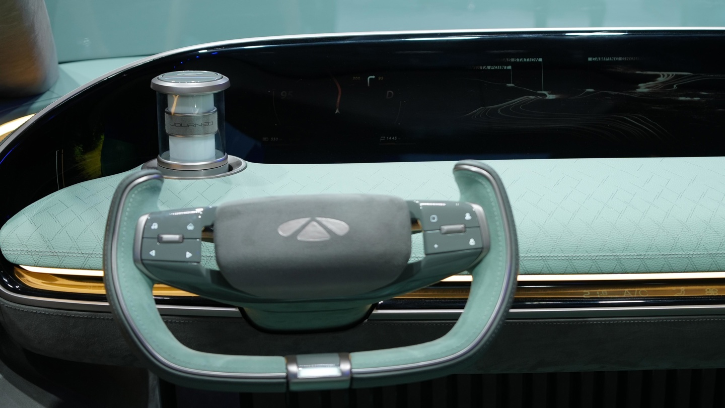 奇瑞劲云目前仍为概念车阶段,简洁的中控台配备了贯穿式大屏与半辐式方向盘,同时搭载了最新的 CPilot5.0 神行智驾系统,并结合 AI 智能扫描与环境信息交互技术,车辆具备 1000TOPS 车端算力及端到端大模型,预计将提供类 L3 级别的自动驾驶能力。车载系统还将支持包括高速 + 城市 NOA、全场景自动泊车、离车泊入等 30 项主动安全功能。