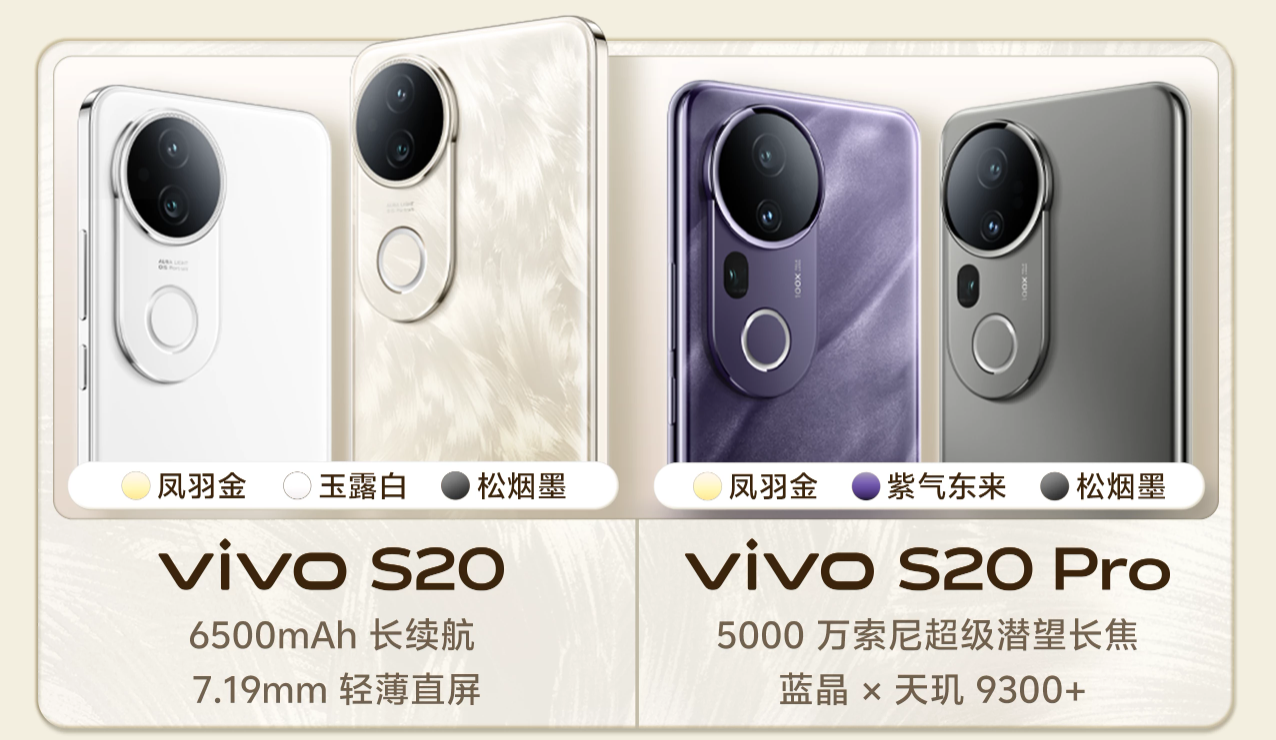 vivo S20 系列屏幕是京东方 Q10“悦目护眼屏”,搭载天玑 9300+ 芯片(此前爆料称标准版为骁龙 7 Gen3),电池为 6500mAh 半固态电池