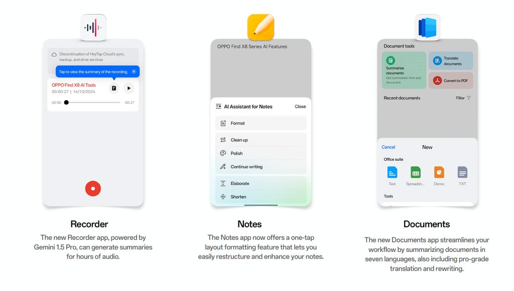 Find X8 Pro上一些AI工具的预览。OPPO/CNET截图