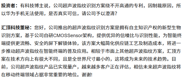 不仅如此,汇顶科技还把手伸进了研发超声波指纹领域。