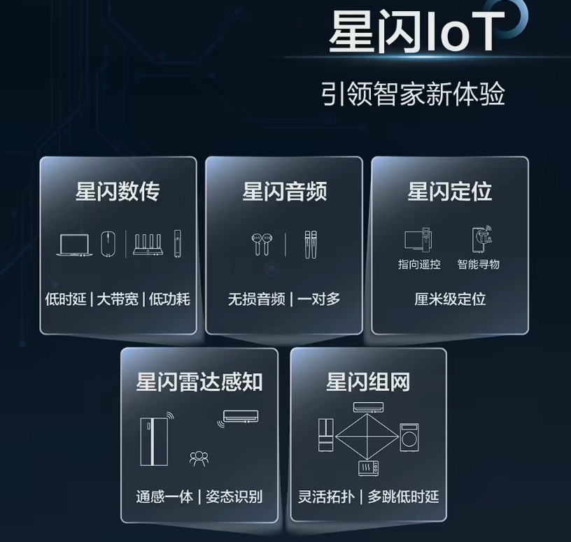 星闪(NearLink)技术大家应该已经不陌生了,是中国原生的新一代无线短距通信技术,与传统短距传输技术方案相比,星闪连接的功耗降低 60%,数传速率达到 6 倍,时延降低至 1/30,连接数达到 10 倍。作为一项新兴技术,星闪的高速率、广覆盖、强抗干扰等优势,都在过往的连接方式上有了新的跨越。