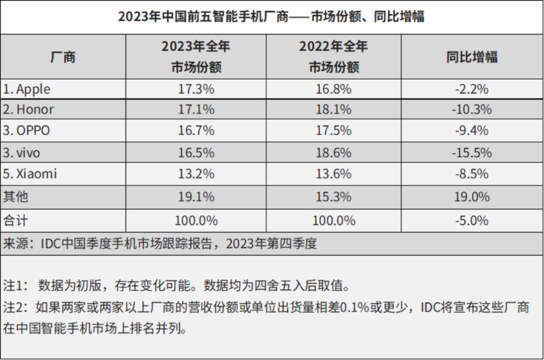 图片来源:《IDC中国季度手机市场跟踪报告,2023年第四季度》