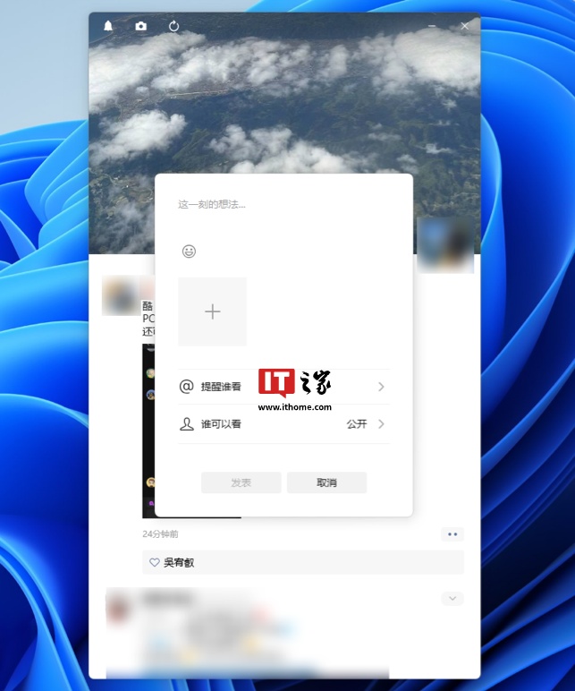 IT之家 11 月 23 日消息,据多位IT之家小伙伴反馈,微信 PC 版近日迎来 4.0.1 更新内测,带来了发布朋友圈功能。