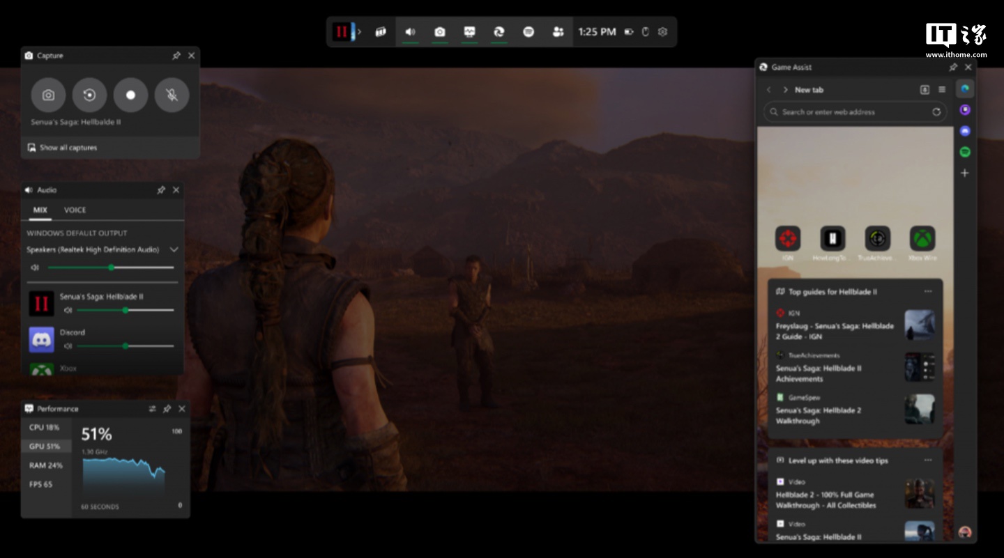 IT之家获悉,该功能内嵌于“Game Bar”(玩家也需要首先在设置里启动 Game Bar 功能)中,玩家需要在 Windows 11 中安装有 Edge Beta 分支 132 版本才能启用这项功能,在打开功能后即可在游戏中通过热键打开 Game Bar,并将浏览器页面钉在游戏页面中。