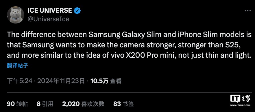 而根据消息源 @i冰宇宙 最新透露,三星 Galaxy S25 Slim 手机摄像头规格据称将“强于 Galaxy S25”。