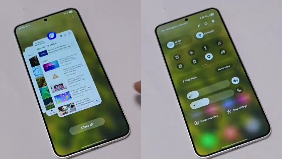 该视频还展示了三星 Android 15 软件中的“Recents”部分,最近打开的应用占据中心位置,其他应用则以堆叠布局排列。