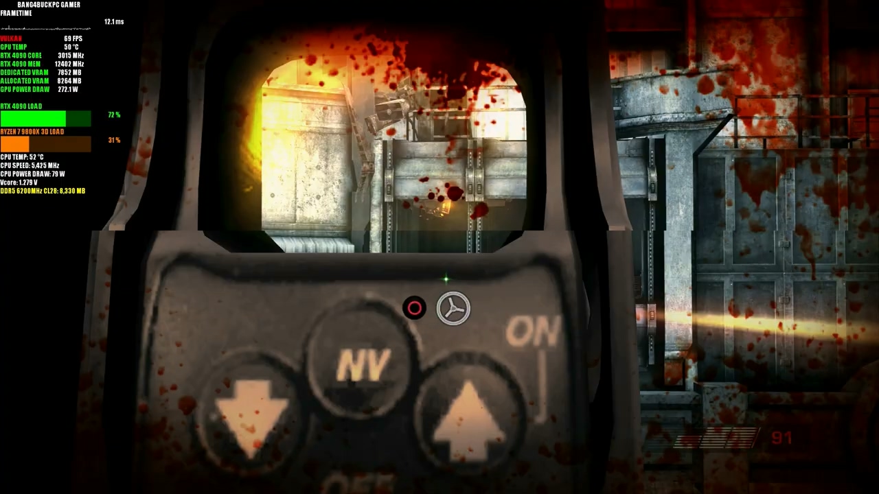 在模拟运行《杀戮地带 2》游戏的时候,英伟达 RTX 4090 的使用率在 70-90% 之间,帧率在 50FPS 到 90FPS 之间波动。