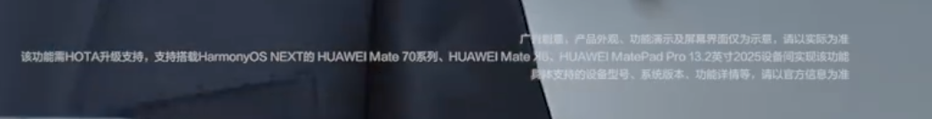 IT之家注意到,预热视频还对“一抓一放、张手就来”功能适配机型进行说明:该功能需 HOTA 升级支持,支持搭载 HarmonyOS NEXT 的 HUAWEI Mate 70 系列、HUAWEI Mate X6、HUAWEI MatePad Pro 13.2 英寸 2025 设备间实现该功能。