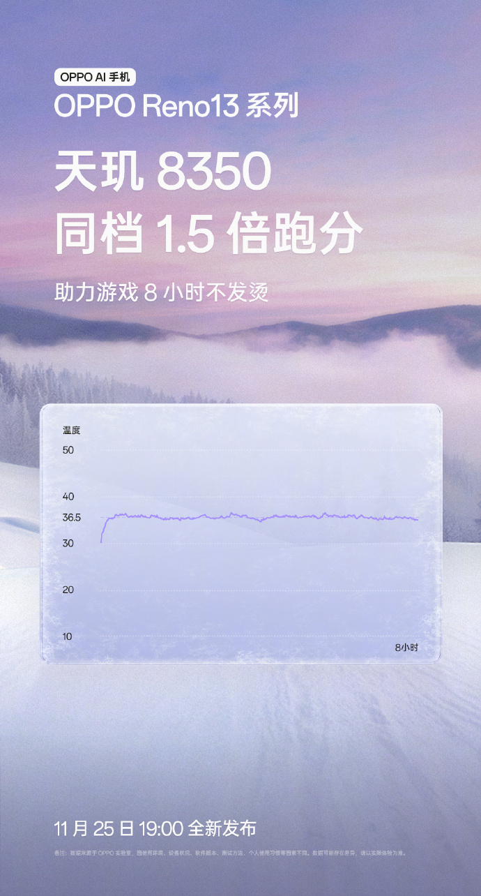 先说最重要的性能层面,这次的OPPO Reno13全系标配天玑8350处理器,根据官方的爆料跑分成绩可以达到同档竞品的1.5倍。所以性能层面完全不用担心,OPPO Reno13系列可以助力用户轻松运行现今市面上的所有主流游戏。而且得益于天玑芯片在功耗和发热控制上的优势,还有据说体温级控温的加入,OPPO Reno13系列可以保证用户连续8小时游戏不发烫,这一点非常重要。