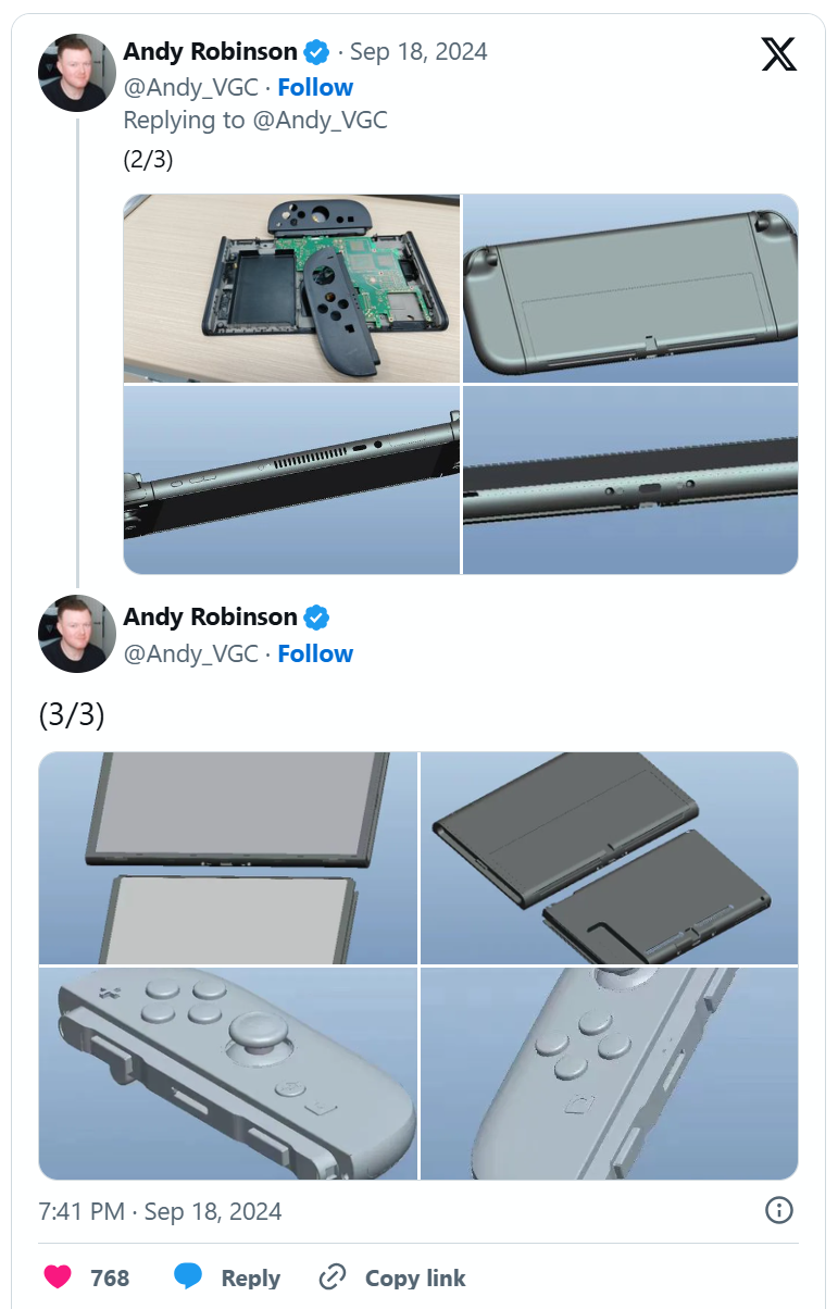 IT之家注意到,今年 9 月,疑似 Switch 2 的图片在网上曝光,显示新主机的外观与现款 Switch 较为相似。虽然图片尚未得到官方证实,但一位未见过最终版 Switch 2 但了解任天堂计划的消息人士向 VGC 透露,这些图片与任天堂向合作伙伴描述的设计相符。