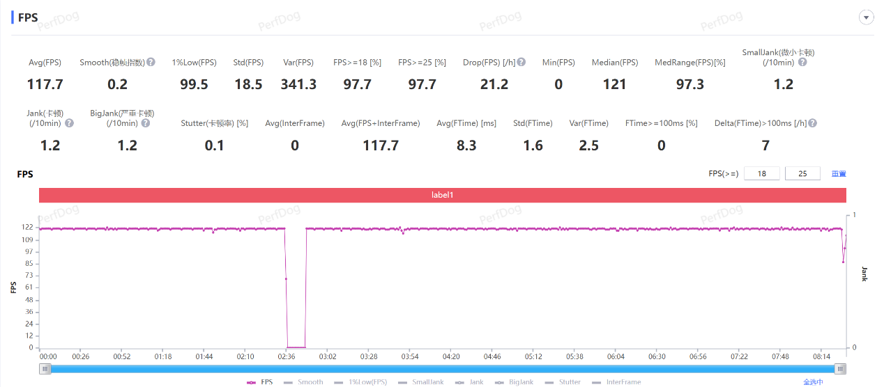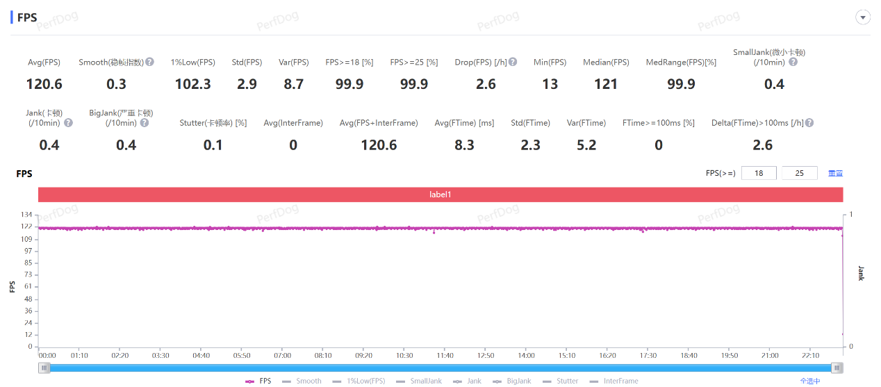 去除一局超短时间对局,其余 5 局的游戏平均帧数基本都是 120 帧,表现非常稳定。