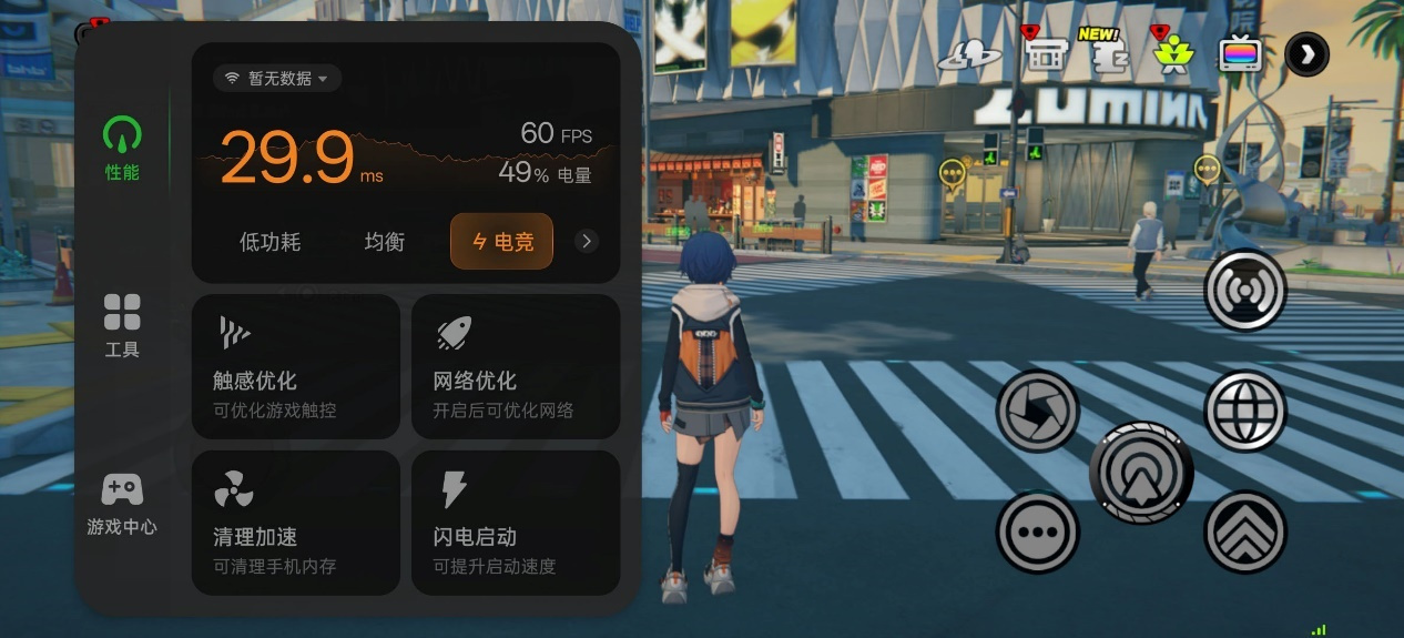 一加 Ace 5 也支持《原神》的超帧超画并发功能,可将游戏优化到 900P+120 帧运行,我们在游戏侧边栏中开启这两个选项,再次进行测试。