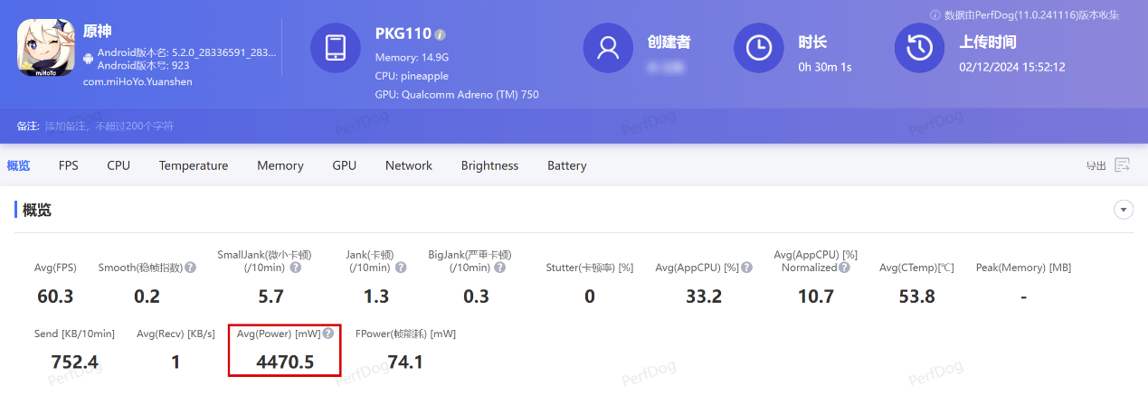 看完《原神》的表现,再看看低负载的《王者荣耀》。我们直接连续游戏 1 小时,测试环境与《原神》保持一致,进行匹配对局。