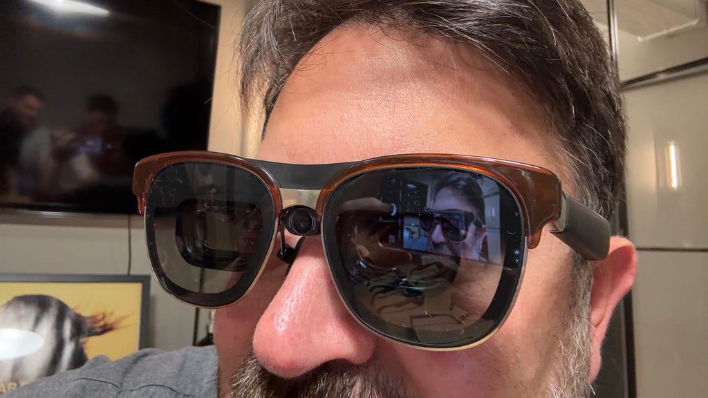 起初,Xreal的新款眼镜感觉像是迭代产品。当我将它们插入我的iPhone时,很难说我看到了新事物的开始。这很熟悉:一部《最后的绝地武士》的大屏幕显示浮现在我面前。当我将它们插入Steam Deck时,我能够在一个大而美丽的显示屏上玩游戏。然后,连接到笔记本电脑后,我看到一个围绕在我周围的曲面显示器,这与我今年早些时候在VR或概念性、实验性AR笔记本电脑上尝试的类似,后者由Xreal上一代眼镜提供动力。