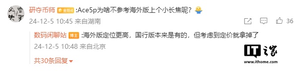 IT之家注意到,有网友在评论区询问:一加 Ace 5 Pro 为何不参考海外版上个小长焦呢?该博主解释称,海外版定位更高,国行版本来是有,但考虑到定价就取消了。