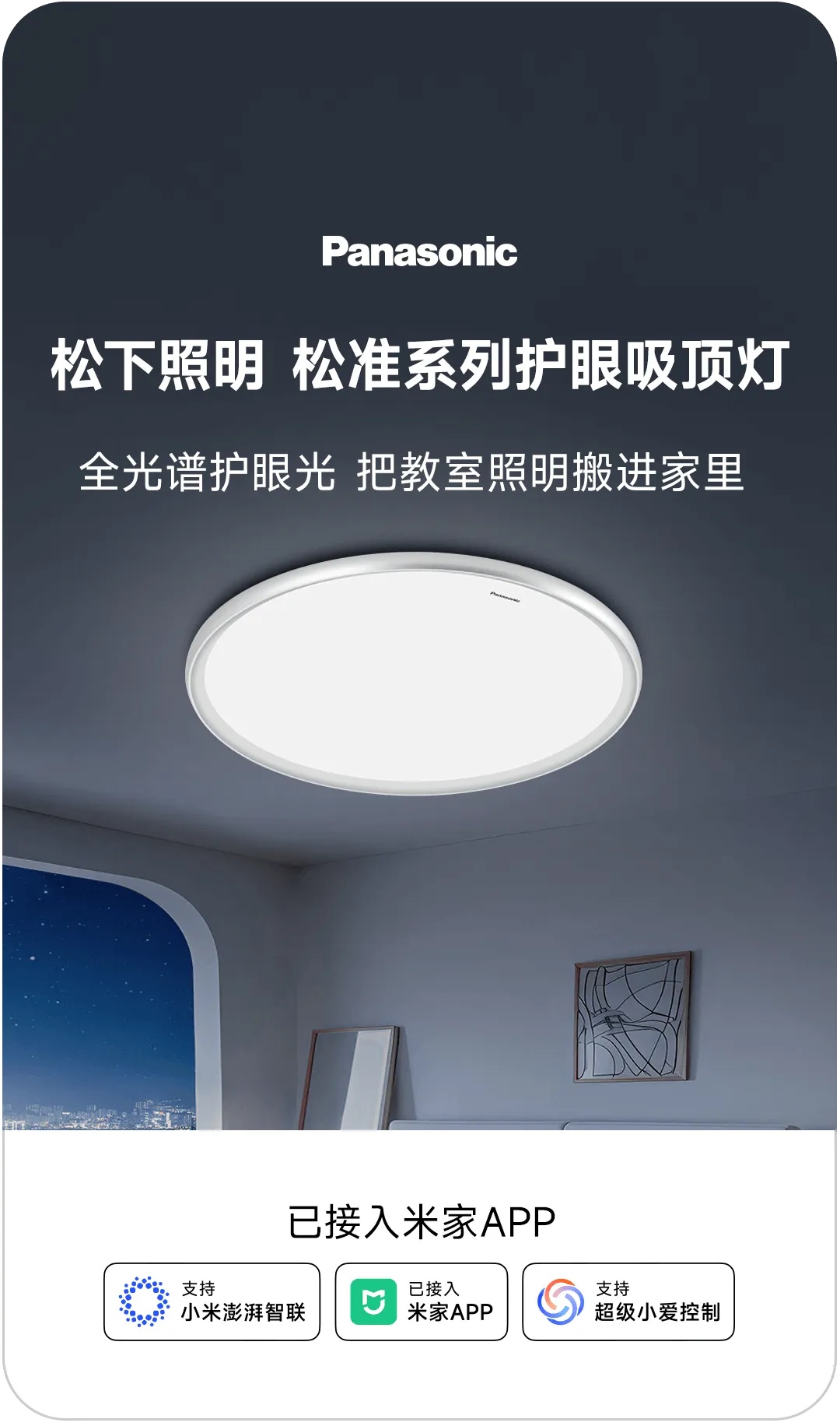 IT之家 12 月 5 日消息,米家官方今日宣布,松下照明的松准系列护眼吸顶灯现已接入米家 App。据悉,该灯具产品将支持小米澎湃智联及超级小爱控制。