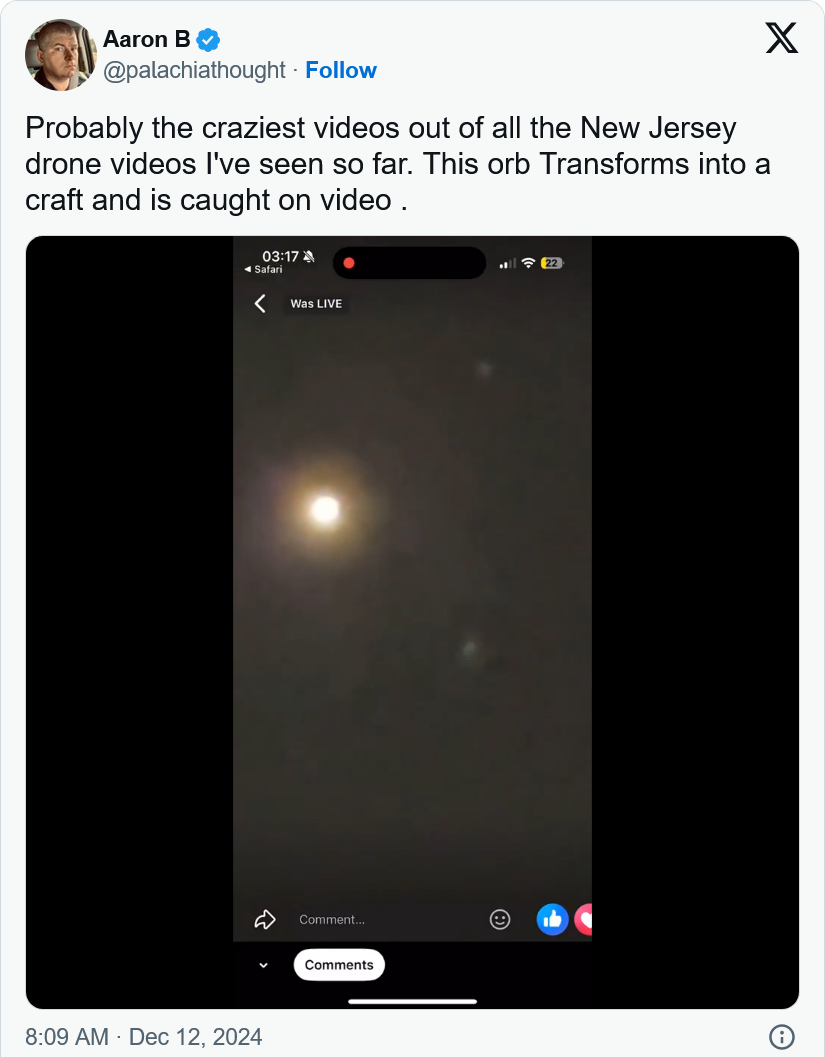 有关报告从 12 月初开始浮出水面,这些报告源于皮卡廷尼兵工厂(Picatinny Arsenal)军队设施附近,甚至包括当选总统唐纳德-特朗普(Donald Trump)的贝德明斯特(Bedminster)高尔夫度假村。 此后,目击事件激增,新泽西州各地都有报道,并蔓延到邻近的宾夕法尼亚州和纽约州。