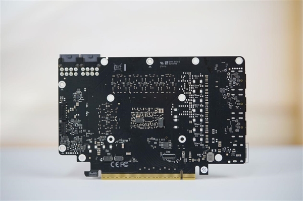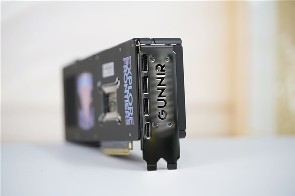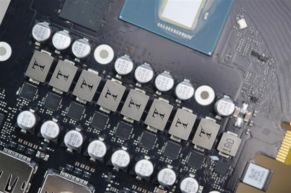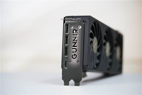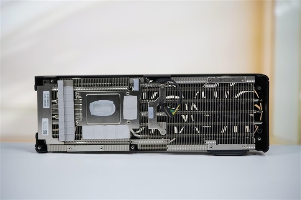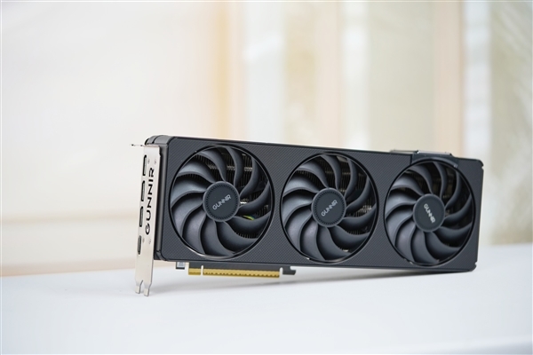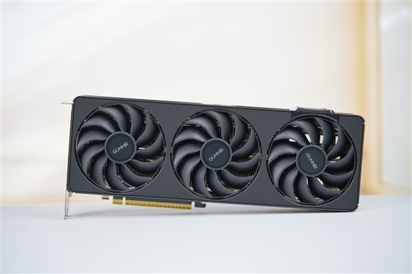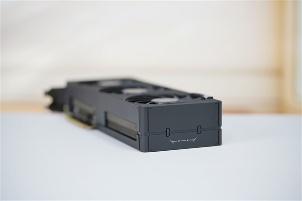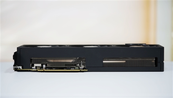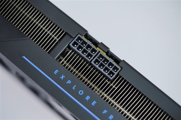 三个风扇都采用了全新扇叶,不但更好看,而且效率更高:最高转速3200RPM,游戏中一般1500RPM左右,烤机大约1700RPM,而且同样转速下的噪音降低11%,同等噪音下的风压提升26%。