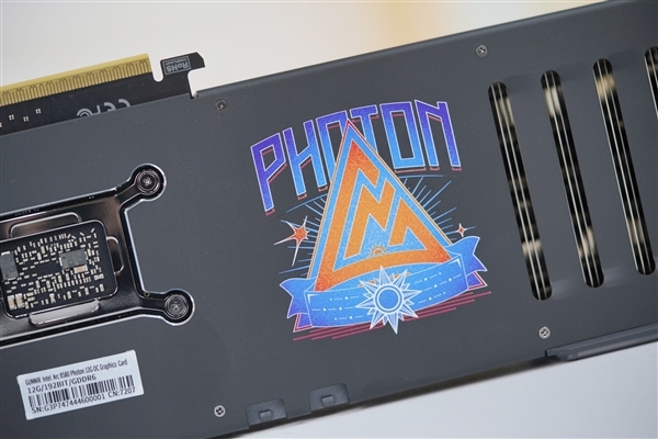 蓝戟锐炫B580 Photon 12G OC显卡属于蓝戟高端光系列显卡,升级了正面纹理,背部加入了全新设计的蓝戟与光系列标志,非常霸气。