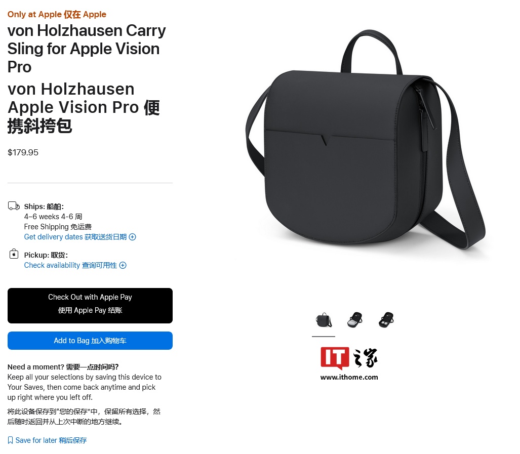 von Holzhausen Carry Sling for Vision Pro 售价 179.95 美元(IT之家备注:当前约 1309 元人民币),比苹果官方便携包更轻薄。
