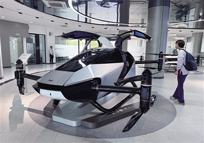 参观者在位于广州的小鹏汇天总部了解小鹏汇天飞行汽车。新华社记者 毛思倩 摄
