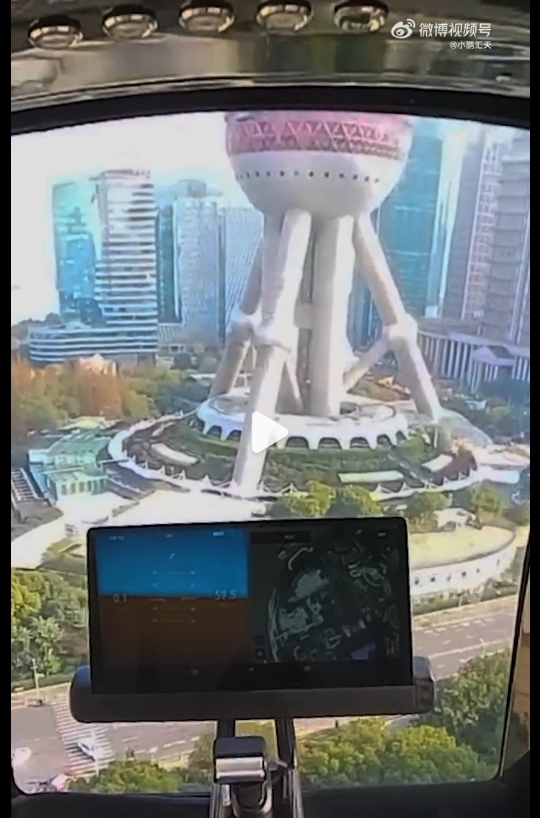 “陆地航母”飞行器从户外草坪缓缓升空,在东方明珠塔前完成了一系列复杂的飞行动作,并在空中“打卡”上海的“三件套”标志性高楼——上海环球金融中心、上海金茂大厦、上海中心大厦。