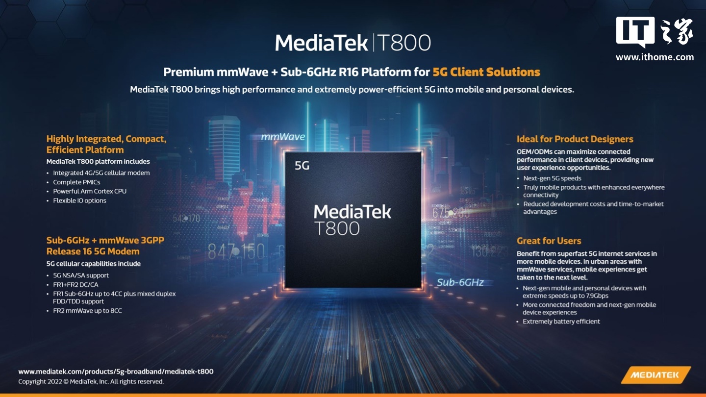 消息称谷歌决定选择联发科(尚未发布)的 T900 调制解调器。前代 T800 发布于 2022 年 11 月,可提供最高 7.9Gbps 的下载速度和 4.2Gbps 的上传速度。